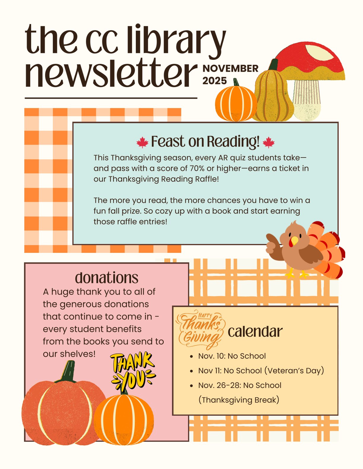 Our library could not be such a wonderful resource for all of our students without our school families support and generosity!